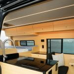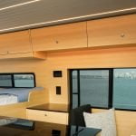 Gorgeous clean eco friendly poplar veneer interior (hardwood plywood bases) finishes throughout. You will be hard pressed to find a more exquisitely finished interior. I have had multiple professional builders comment on the quality of craftsmanship and attention to detail on the interior. Willow offers lots of great storage w/both cabinets, drawers and a finished bulk head area above the front seats. Soliod surface countertops.