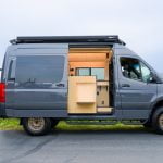 Stay toasty warm with the latest Espar Diesel Heater. New EcoFlow Wave 2 Portable AC with second battery. Maxx fan above bed. Extra large cozy bed! Pull out toilet. Dometic 65 fridge. Easy to dump grey water tank under sink. 22 galon fresh water tank. Both front seats swivel w/a great expandable dining room table for two. There’s also a drop down table for outdoor cooking and dining on backside of kitchen cabinet. Dual burner conduction cooktop and /sink w/extendable faucet also placed in sliding door cabinet. Willow is a conversation starter wherever you go.